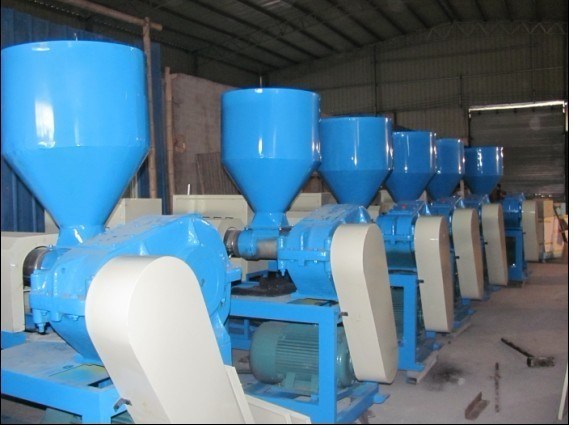coupez les matériaux encore et faites les matériaux se rétrécir, puis gavez le matériel rétréci dans l'extrudeuse. pour la même capacité, la puissance est seulement 50% de l'agglomerator.